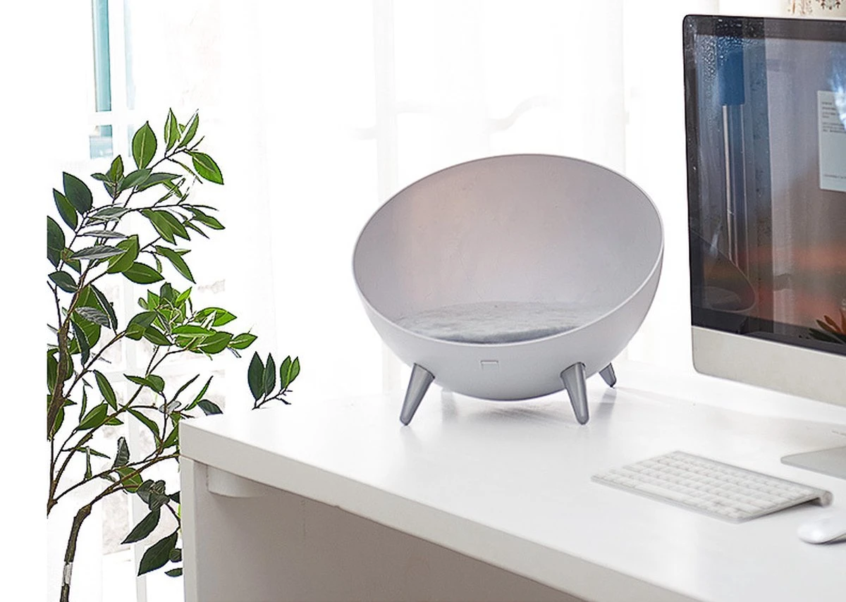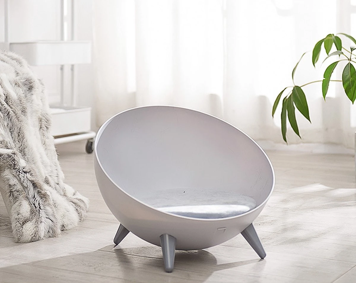 Katten en kitten let op! Hier is de ultimatieve designer-stoel. De ronde ligkom is uit wit transparant acryl gemaakt en er ligt een heerlijk kussen in, die bij de levering is inbegrepen. Deze verhoogde zitplaats wordt beslist direct de nieuwe lievelingsplaats van uw huisdier.
