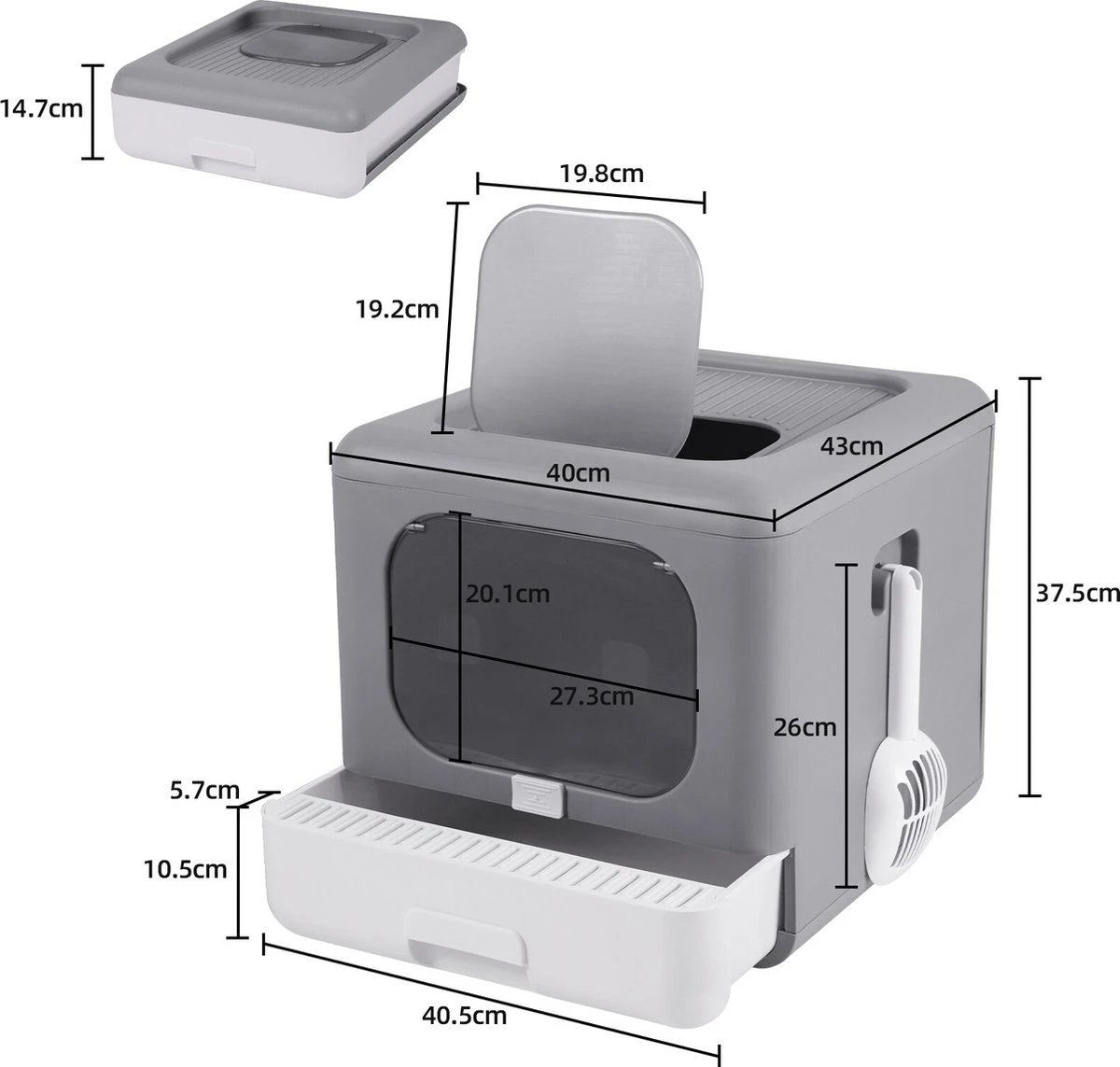 Kattenbak Groot – Kattenbak XXL – Kattenbak Grote Katten – Opvouwbaar – Grijs