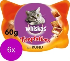 Whiskas Temptations 60 G – Kattensnack – 6 X Rund&Vlees