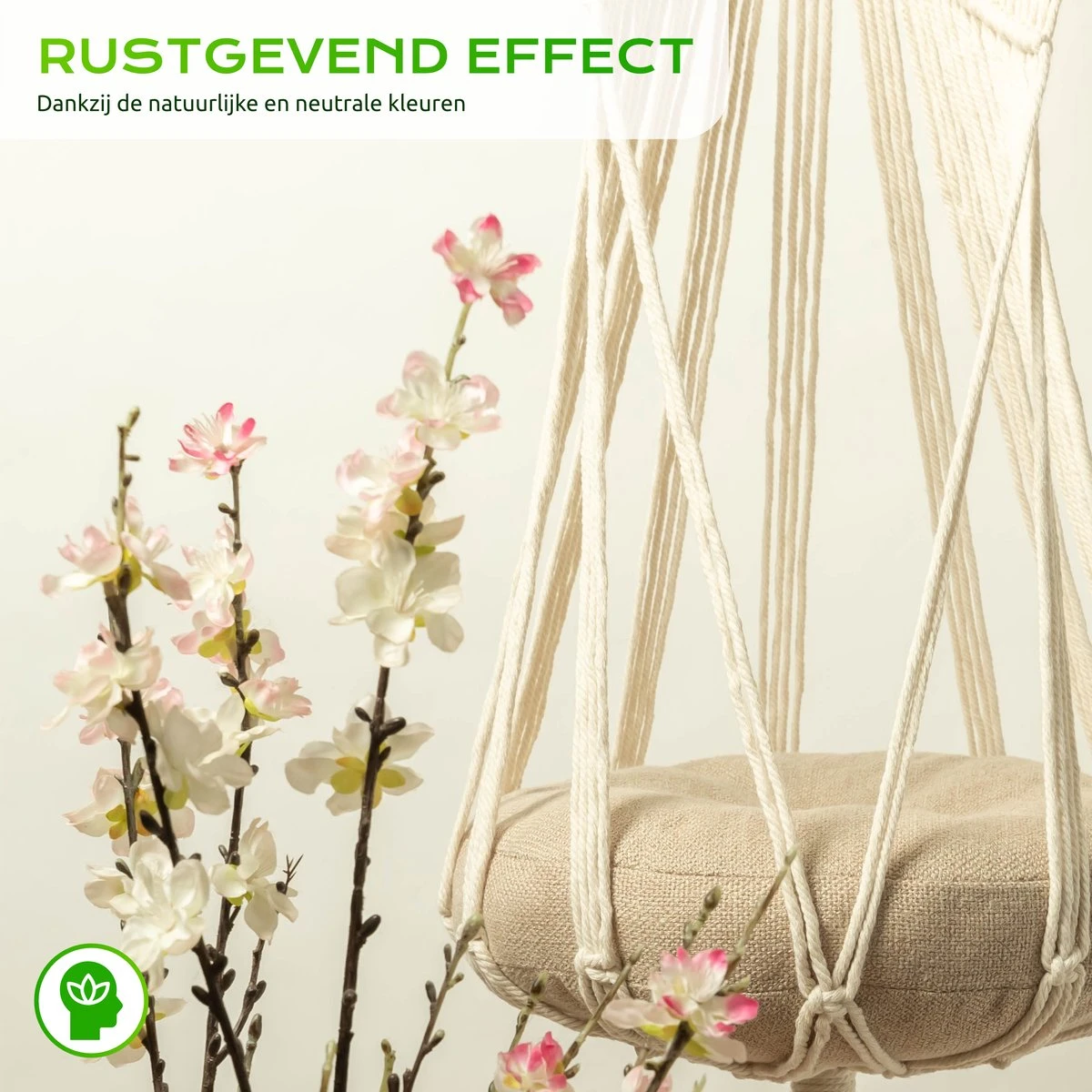 Dankzij het sterke macramé koord en het gevlochten ontwerp is deze kattenhangmat een aanwinst voor iedere woon- of slaapkamer. De neutrale ecru kleuren en natuurlijke materialen zorgen ervoor dat het past bij vrijwel ieder interieur. Kom tot rust terwijl je je poes of kat ziet genieten van het uitzicht.
