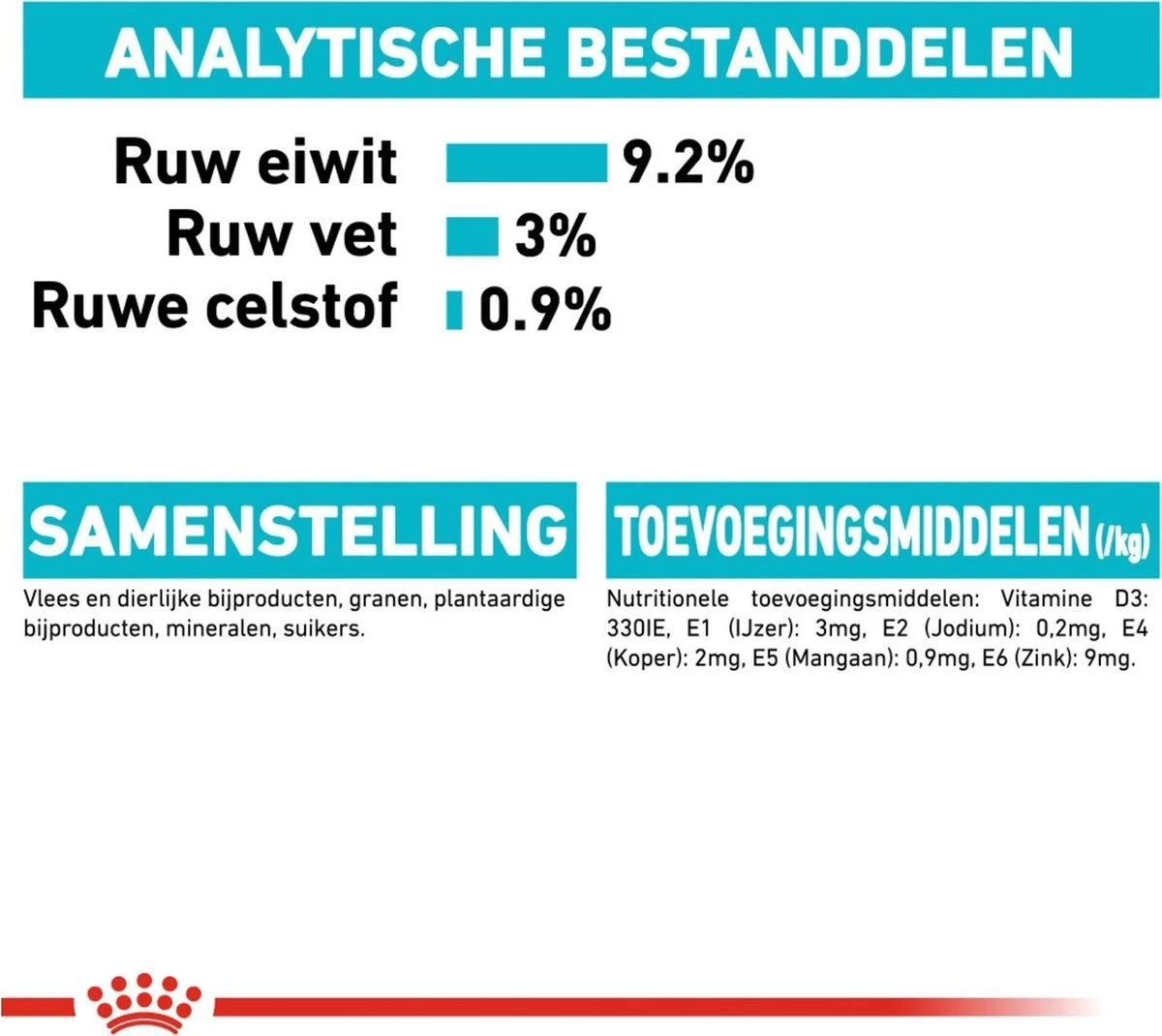| Voedingsadvies | Samensteling: vlees en dierlijke bijproducten, granen, mineralen, plantaardige bijproducten, suiker |