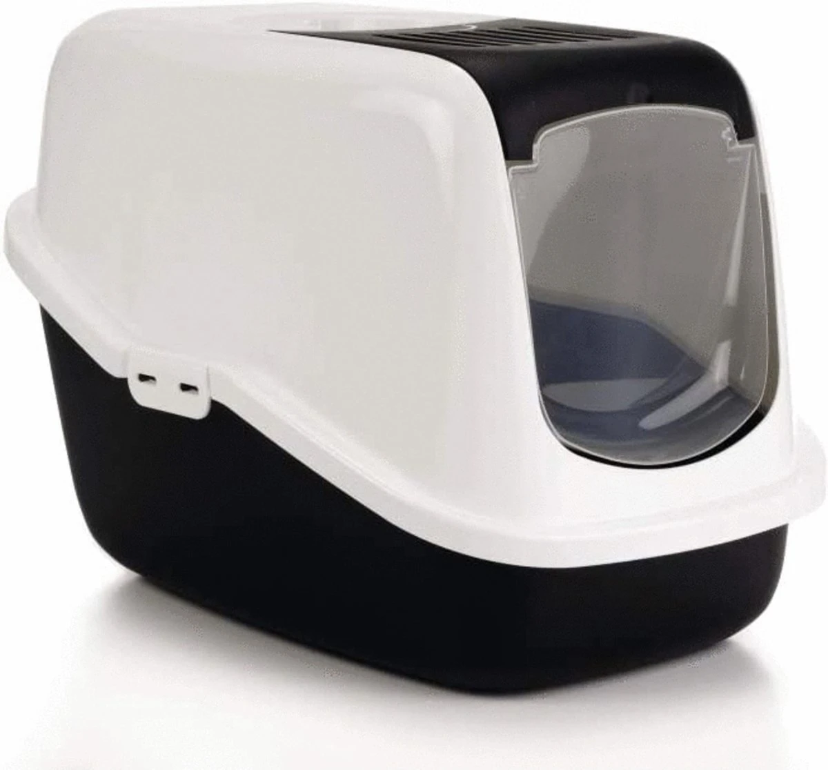 Een mooi gevormde kattenbak in een modieuze kleurstelling. Doordat het deurtje samen met het binnenste gedeelte van de bovenzijde in een handomdraai los te klikken is hoef je niet meer de complete bovenzijde van de onderbak los te maken om deze schoon te maken. Het los geklikte gedeelte kun je omhoog duwen zodat je er makkelijk bij kunt.