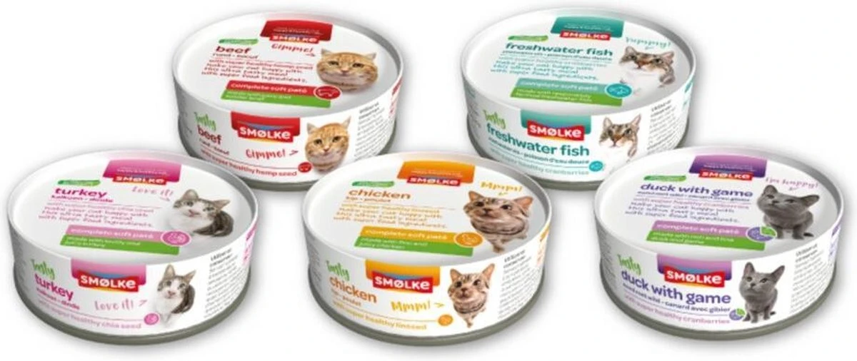 Een ultra lekkere Variatie Box met daarin een combinatie van de SMØLKE SOFT PATÉ MAALTIJDEN. Van elke soort soft paté zitten er drie maaltijden in de variatie box namelijk; Smølke Soft Paté Kip, Smølke Soft Paté Kalkoen, Smølke Soft Paté Zoetwatervis, Smølke Soft Paté Eend met Wild en van de Smølke Soft Paté Rund zit er nog eentje extra in! Heerlijk variëren met deze ultra lekkere maaltijden gemaakt met super food ingrediënten!