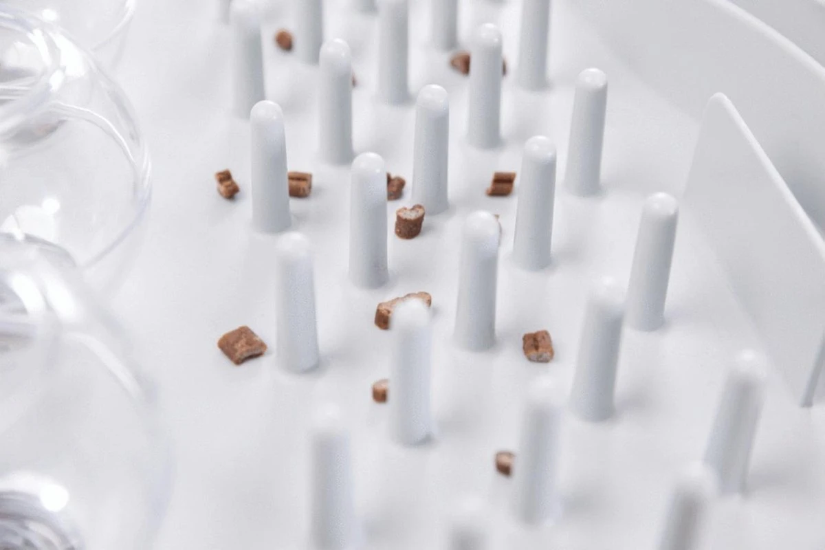 – Voorkomt schrokken doordat je kat langer bezig is met zijn eten te pakken krijgen